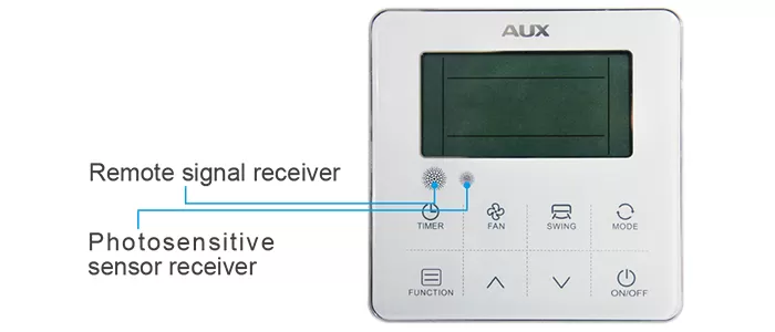 A signal receiver is built-in the remote controller. Signal from remote controller can be received by wired controller, so the system status could be adjusted using a remote controller.