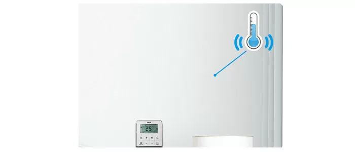 With the follow me function, the indoor unit responds to the temperature measured by the temperature sensor built-in the wired controller, rather temperature sensor in the indoor unit itself, so the temperature is measured closer to the user, rather than at the ceiling or floor height.