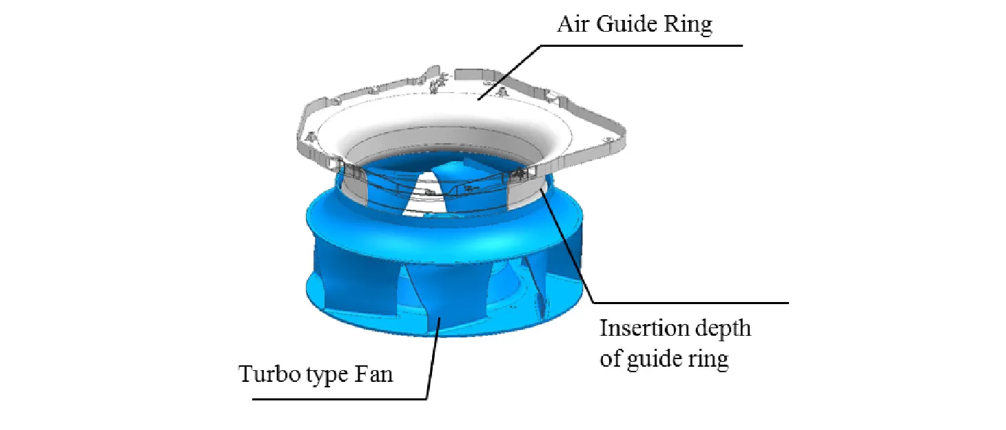 Optimized structure of air guide ring, Insertion depth design of guide ring through simulation technology, Ensure large air flow, im_x005fprove cooling & heating comfort.