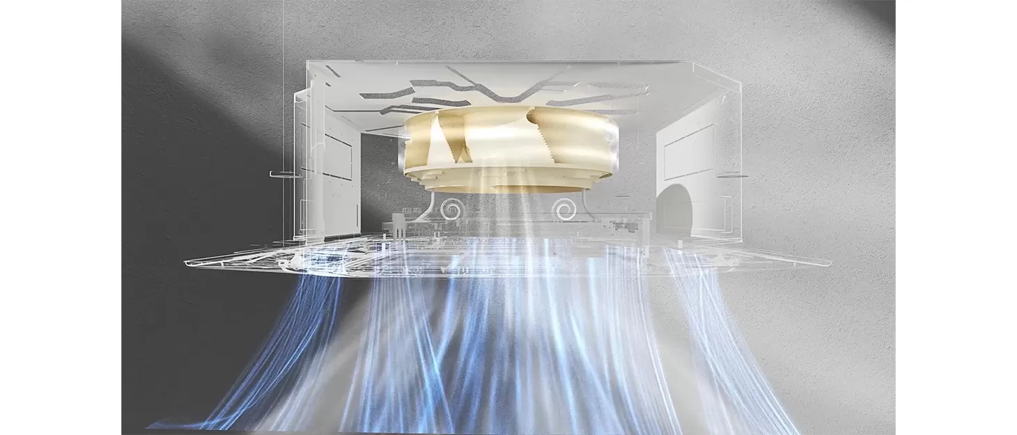 Round flow panel make the air diffuse from 360°direction, and the temperature distribution is more uniform.