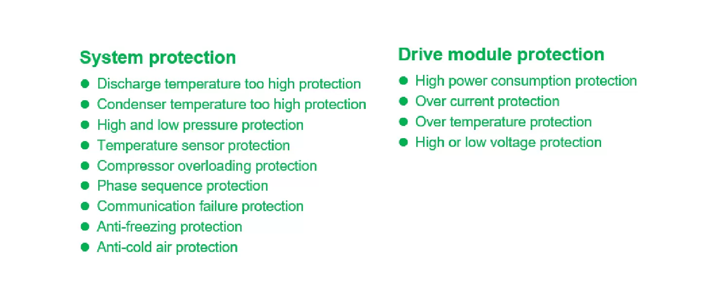 The unit contains multiple protection functions to ensure the normal operation of the unit and greatly reduce the frequency of failure.