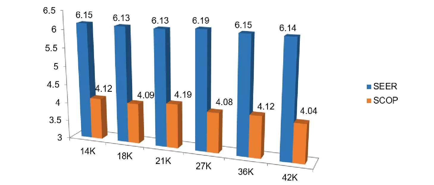 The outdoor unit is equipped with high-efficiency DC invertercompressor, speed-adjustable fan, electronic expansion valveand advanced 180° sine wave vector drive, with SEER higherthan 6.1 and SCOP higher than 4.0,meets EU A++/A+.